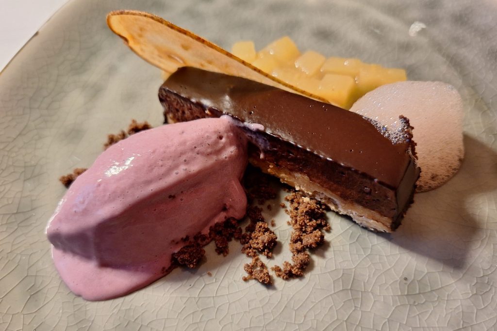 Zum Dessert gab es schließlich Birne mit Nougat in Rotwein, gefolgt von kleinen Naschereien aus der hauseigenen Patisserie. Alle Weine und Spirituosen kamen von renommierten österreichischen Betrieben. „Ich verneige mich vor Euch“ schloss eine Dame, die einst in der ersten Maturaklasse der Ischler Tourismusschulen gesessen war, stellvertretend für alle Gäste dieses Abends. „Die Motivation dieser jungen Gastronomen ist überwältigend“ lobte Direktor Falkensteiner bei seinen Schlussworten, „und dabei haben sie morgen um 8h00 alle wieder normalen Unterricht!“.