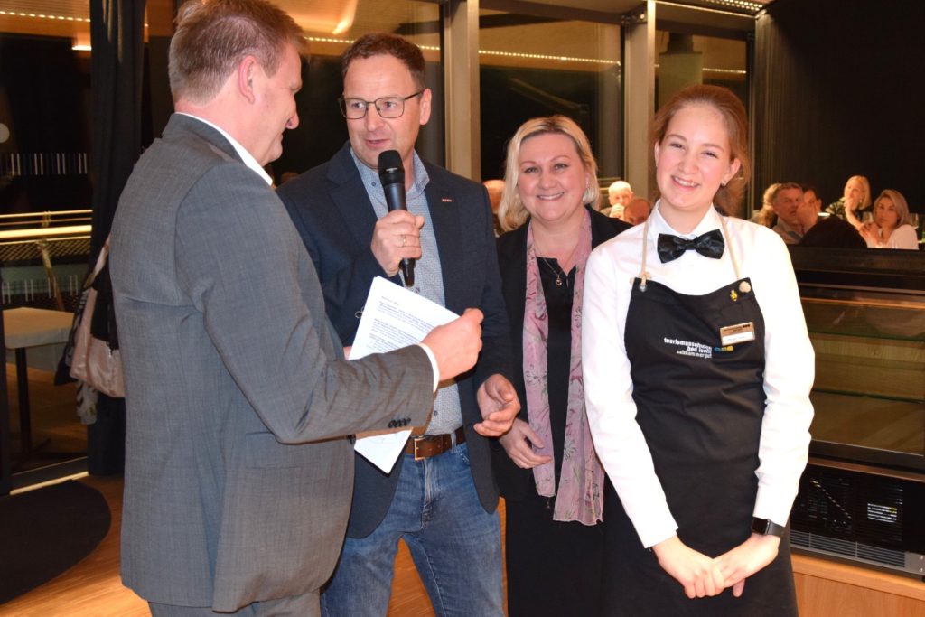 Drei Bürgermeister*innen und EU-Abgeordneter Hannes Heide würdigten ebenso die Leistungen der Ischler Tourismusschule, wie Vertreter der Wirtschaftskammer die Bedeutung der gastronomischen Kultur im heimischen Tourismusangebot hervorhoben. Ähnlich erfreut äußerten sich die beiden Tourismusdirektoren Patrick De Bettin (Wolfgangsee) und Andreas Murray (Traunsee-Almtal), die ja auch regelmäßig Praktikant*innen und Absolvent*innen der Tourismusschulen einstellen. Das Lob von Florian Mayer, Chef des Hotels Dachsteinkönig in Gosau, und Renate Scherr von der Tauroa-Gastrogruppe (Red Bull) unterstrich einerseits die ausgezeichnete Vernetzung der Ischler HLT in der heimischen Tourismuswirtschaft und sprach andererseits den jungen Talenten ein großes Kompliment für ihr Können und ihre hohe soziale Kompetenz als Gastgeber aus.