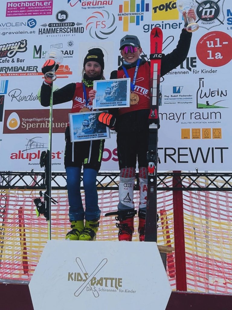 Die Tagesbestzeiten ging bei den Mädchen an Sonja Wimmer (WSV Strobl) und an Vincent Wölfle (USC Faistenau) bei den Burschen. Beide erhielten als Anerkennung einen Glaspokal, der an die große Weltcup-Tradition erinnerte. Ihre Namen werden nun stolz auf der KidsXBattle-Gondel am Kasberg verewigt, sodass sie noch lange an dieses spannende Event erinnert werden.