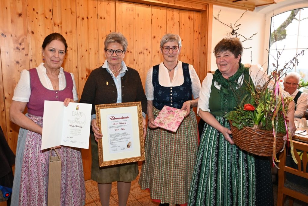 Die Ehrung fand im festlichen Rahmen beim Gasthof Reschen am Grasberg statt, wohin Monika Natmessnig unter einem Vorwand eingeladen wurde. Neben den Mitgliedern der Ortsgruppe gratulierten auch OÖ-Landesobfrau Martina Pühringer, Bezirksobfrau Maria Wicke sowie Bürgermeister Martin Pelzer. Eine besondere Ehre war die Anwesenheit von Gertrude Herbst, die seit über 40 Jahren aktiv im Verein tätig ist.