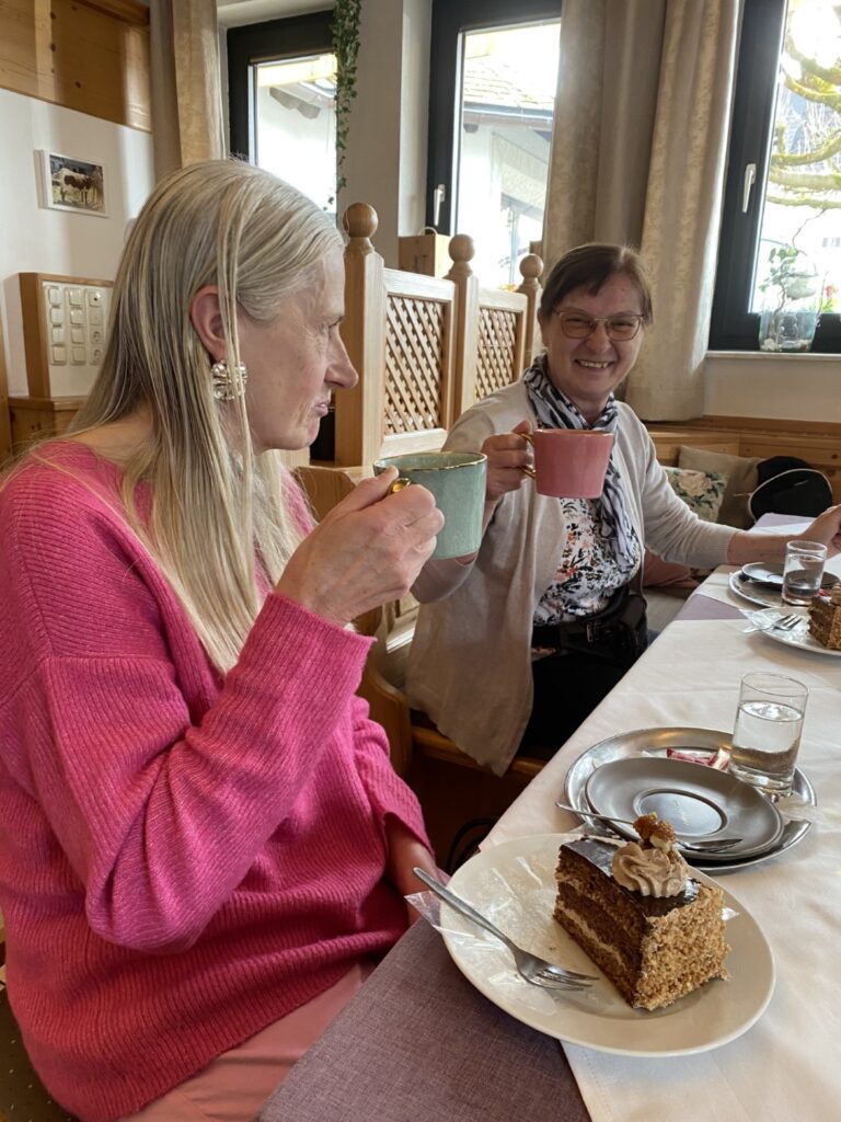 Ziel war der Gasthof Pöll am Ortsplatz. Schon von weitem konnte man das wunderbare Bratl riechen, mit einem Natursafterl zum Hineinknien, einem flaumigen Semmelknödel und Krautsalat mit vielen Speckkrusteln. Das süffige regionale Bier aus Eggenberg sorgte für die Zufuhr der nötigen Elektrolyte. Bestens betreut wurden die Wanderer vom umsichtigen, charmanten und witzigen jungen Kellner Marcel und seinen Kollegen.