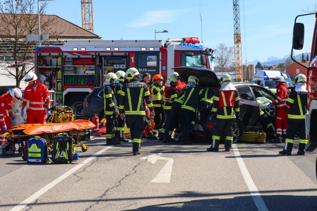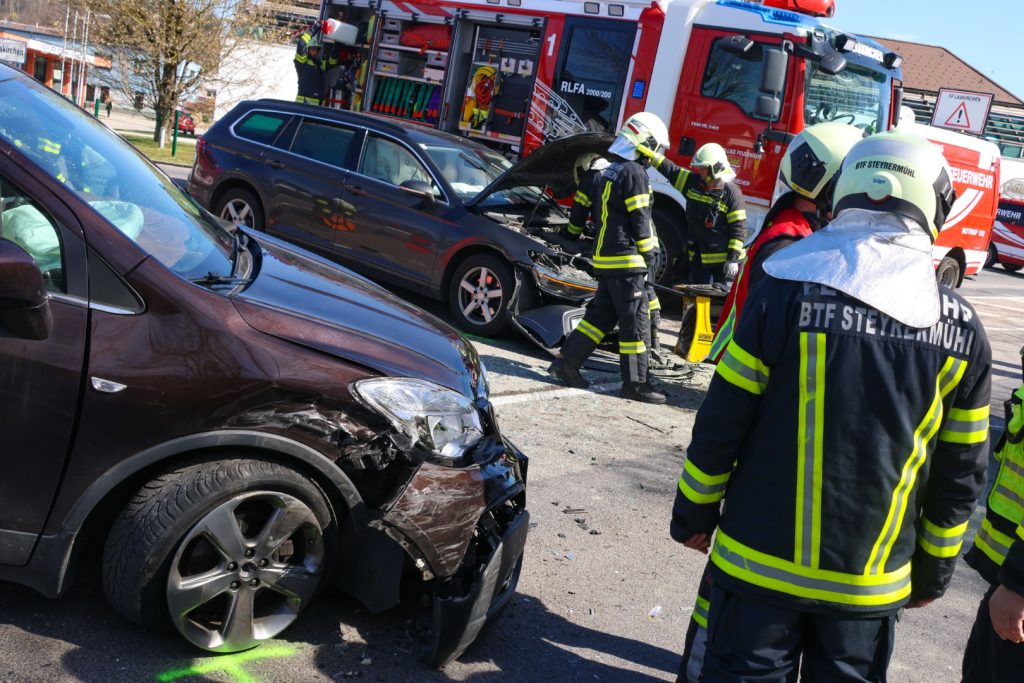 Im Kreuzungsbereich der B144 Gmundener Straße mit der L1308 Kranichsteger Straße, Kreuzbergstraße, in Laakirchen kollidierten Freitagmittag aus noch unbekannten Gründen drei PKW. Eine Person musste von den Einsatzkräften der drei alarmierten Feuerwehren aus einem der Unfallfahrzeuge befreit werden.