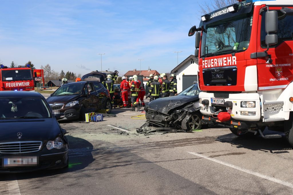 Ein schwerer Verkehrsunfall mit drei beteiligten PKW hat sich Freitagmittag in einem Kreuzungsbereich der B144 Gmundener Straße in Laakirchen ereignet.
