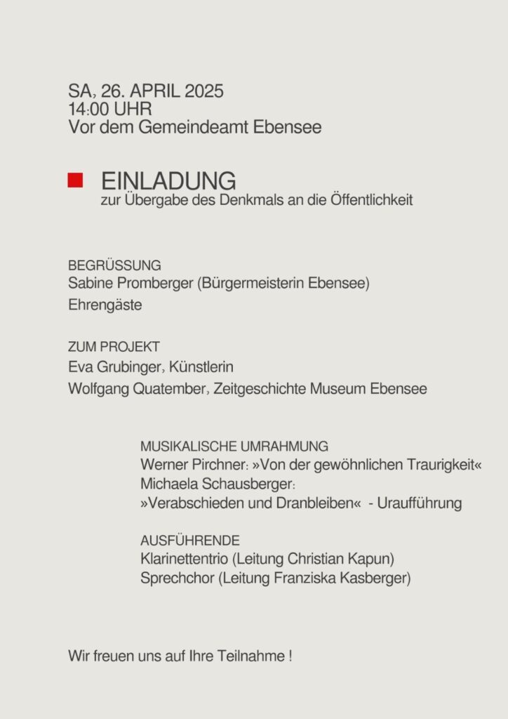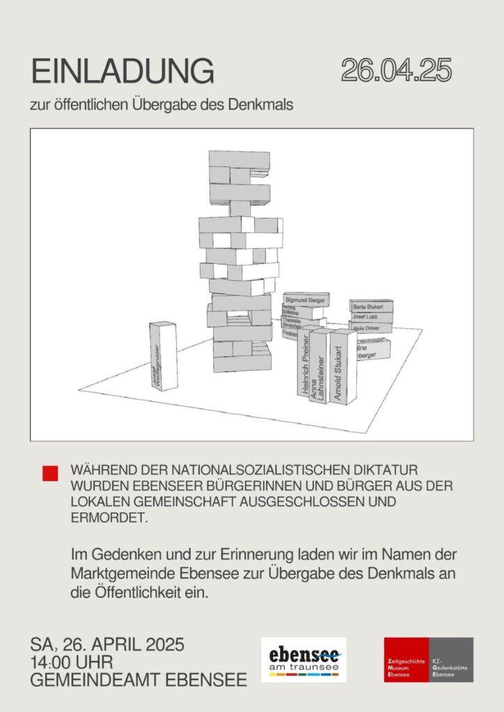 Informationen zur Übergabe des Denkmals an die Öffentlichkeit am Sa., 26.4.2025 um 14:00 Uhr.