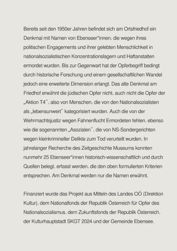 Denkmal für Ebenseer NS-Opfer – Übergabe an die Öffentlichkeit