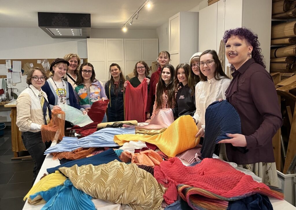 Die beeindruckende Führung im Schneider- und Plisseeatelier von Tanja Raab zeigte uns ein bereits sehr seltenes Handwerk. Das Wiedersehen im Atelier „zigzag“ mit Gewandmeisterin Hannah Hoffmann, einer Absolventin unserer Schule, freute uns besonders.