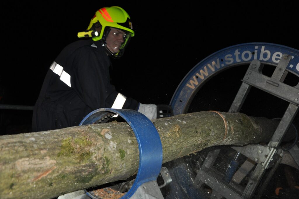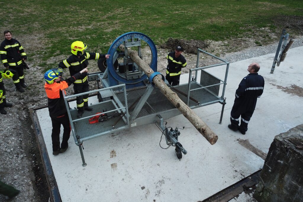 Prognosen sagen voraus, dass Elementarereignisse aufgrund der Klimaerwärmung künftig öfter und heftiger auftreten werden als bisher. Aus diesem Grund wurde mit einem von der LFS-Vöcklabruck dem Pflichtbereich Ebensee zur Verfügung gestellten Holzverspannungssimulator eine Übung abgehalten. Diese mit einer hydraulischen Presse ausgestattete Maschine macht die oft unterschätzte Gefahr von Baumstämmen bewusst, wenn diese nach einem Sturmereignis über Straßen und Verkehrswege zu liegen kommen. Unter Aufsicht und Anleitung von Fachpersonal konnten die Kameraden mit einer Motorsäge verschiedene Schnitttechniken bei unter Spannung stehenden Baumstämmen praxisnah üben. Zum Abschluss gab es noch für jeden Teilnehmer von der AUVA einen USB-Stick mit Lehrvideos zur Waldarbeit über Ausrüstung, Werkzeug bis hin zu Schwach- und Starkholzfällung und aller dazugehörenden Schnitttechniken samt Lernbroschüren und ein Erste Hilfe Set für Forstarbeiter. Für die Teilnehmer der FF Rindbach war dies eine sehr informative und lehrreiche Übung.
