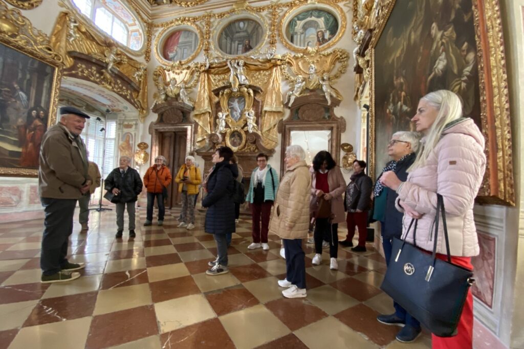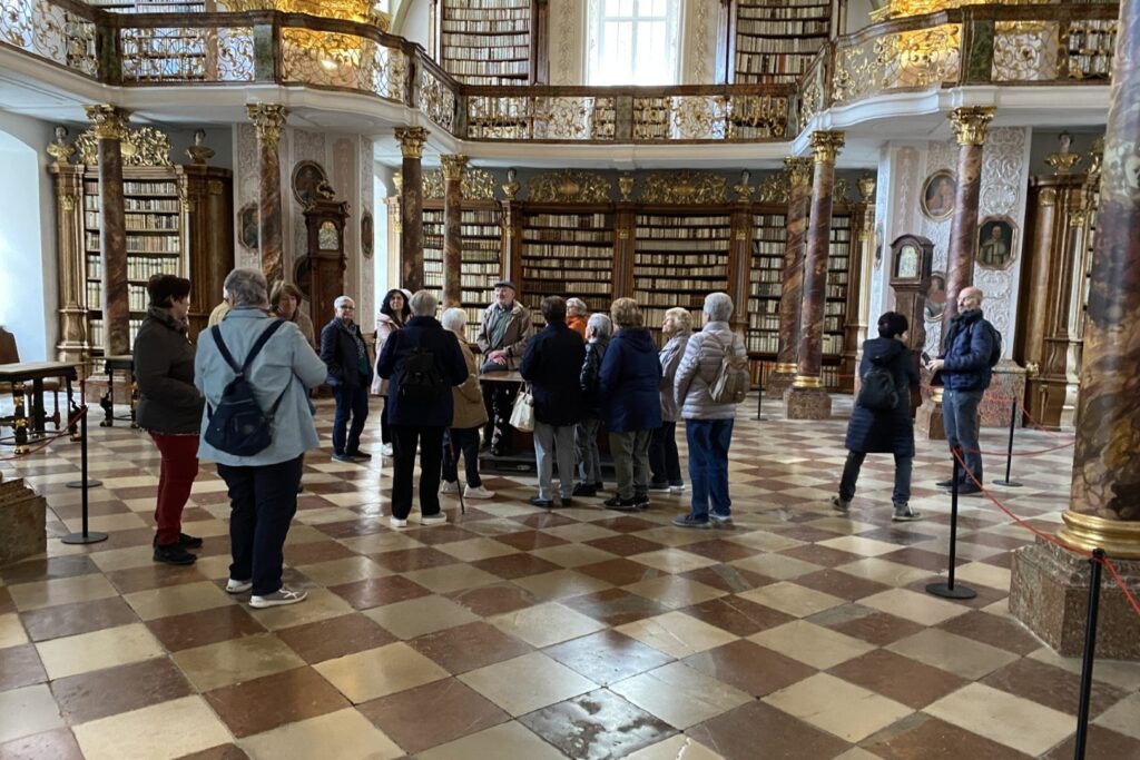 … war das Motto für einen Ausflug des Pensionistenverbandes Altmünster. Erstes Ziel war das erst kürzlich renovierte Zisterzienserstift Schlierbach mit seinen vielfältigen Bereichen. Beeindruckt waren die Senioren von der barocken Pracht im Bernhardi-Festsaal, der Stiftsbibliothek und der Stiftskirche sowie des Kreuzgangs. Wirtschaftlich bedeutend für das Stift sind auch die Bio-Schaukäserei und die Glaswerkstätte mit ihrem Kunsthandwerk. Im Stiftsgymnasium werden junge Mädchen und Burschen im historischen Ambiente in die Welt der Erwachsenen geführt.