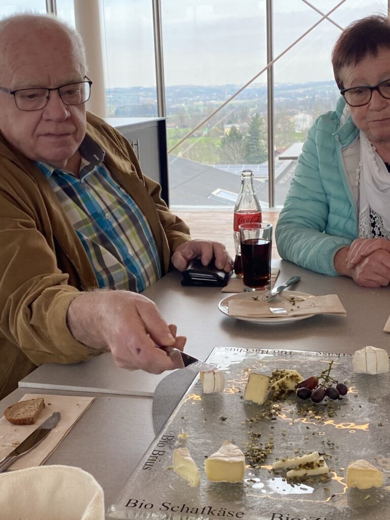 Mit herrlichem Ausblick über das Kremstal wurden im angeschlossenen Panoramacafé die Schlierbacher Käsesorten verkostet. Der sprichwörtliche strenge Geruch des Schlierbacher Käses hielt sich überraschenderweise in Grenzen. Natürlich wurde auch der Klosterladen für ein Mitbringsel gestürmt.