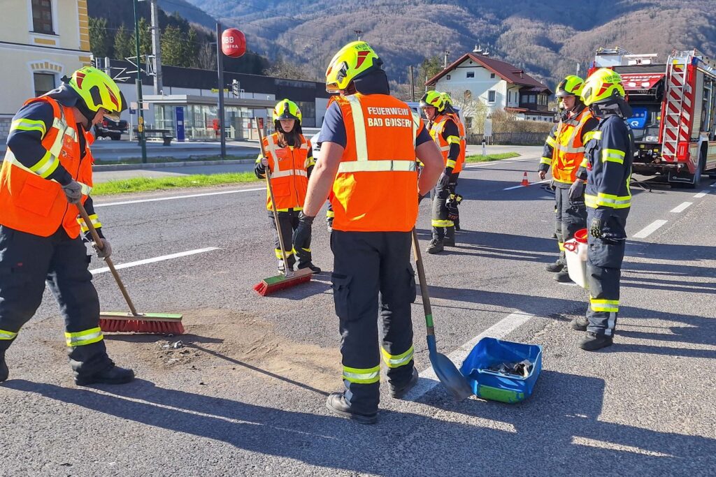 Gottlob dürfte der Zusammenstoß keine Verletzten gefordert haben, doch für die Aufräumarbeiten wurde der Einsatz der FF Bad Goisern erforderlich. Neben dem Absichern der Unfallstelle und dem Aufbau eines Brandschutzes mussten die Kräfte vorallem ausgelaufene Betriebsflüssigkeiten auffangen und binden sowie die Fahrbahn von Fahrzeugteilen reinigen. Sogar schweres Bergegerät kam zum Einsatz: „Denn die beiden Unfallfahrzeuge waren derart ineinander verkeilt, dass wir sogar unseren hydraulischen Spreizer einsetzen mussten, um die zwei PKWs voneinander trennen zu können“, so Einsatzleiter Claus Ebner. Erst dann konnte ein Abschleppdienst die Fahrzeuge abtransportieren und die Straße wieder für den Verkehr freigegeben werden.