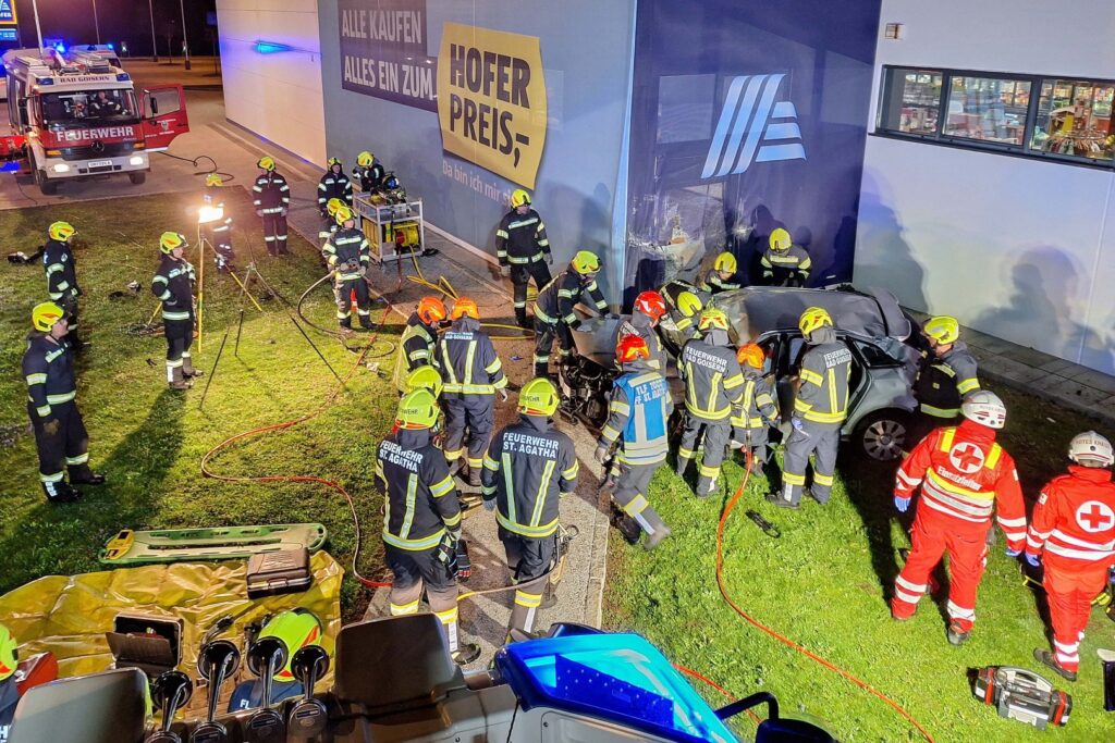 Am Ostersonntagmorgen kam es in Bad Goisern zu einem schweren Verkehrsunfall mit einer eingeklemmten Person. Ein Pkw krachte mit voller Wucht gegen einen Supermarkt – der Fahrer musste mit schwerem Gerät aus dem Wrack befreit werden.