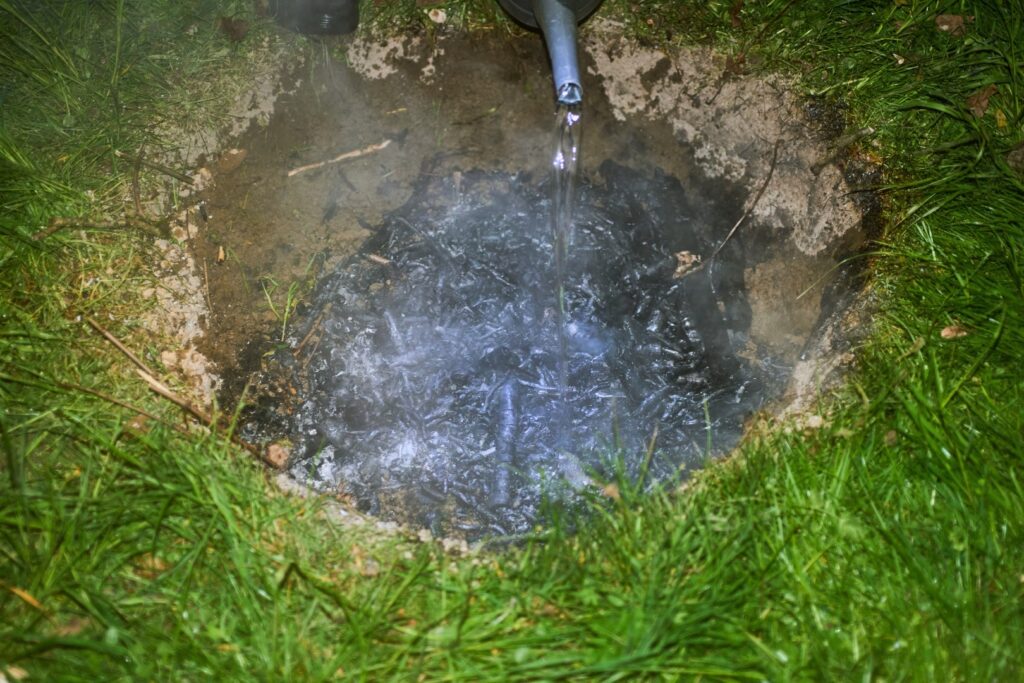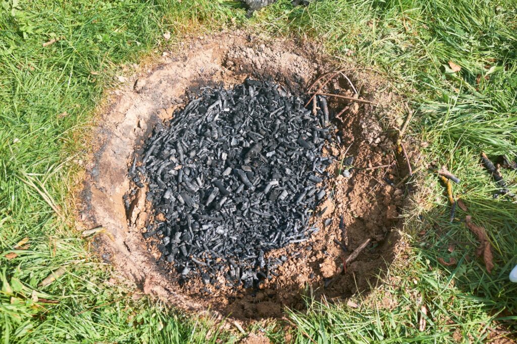 Der Nachmittag beginnt mit Köhlern. Die Teilnehmenden heben eine Erdgrube aus, legen sie mit Holz aus, setzen es in Brand, steuern und überwachen unter Anleitung der Referenten den Prozess. Parallel wird auch der Holzvergaserofen bestückt und die Verbrennung in ihm in Gang gesetzt. Während die Feuer brennen und glosen, ist genug Zeit für die Theorie. Vermittelt werden die Geschichte der Terra Preta, chemisch-physikalische Grundlagen sowie technische Möglichkeiten und Anwendungen im eigenen Garten.