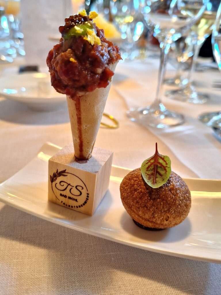 „Es kann so einfach sein“, so lautete der Übertitel der Speisekarte für diesen Abend. Was die Schülerinnen und Schüler der Talenteschmiede der Bad Ischler Tourismusschulen aber auf die Teller zauberten, war alles andere als einfach, sondern eine großartig abgestimmte Speisenfolge auf Sterneniveau, dargeboten von topmotivierten, charmanten Gastgeber*innen.