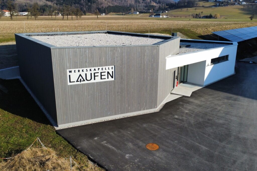 Gmunden/Engelhof. Über 30 Jahre lang hat die Werkskapelle Laufen Gmunden-Engelhof mit großem Engagement nach Möglichkeiten gesucht, die Probensituation des Blasorchesters zu verbessern. Verschiedenste Varianten wurden geprüft, zahlreiche Pläne gezeichnet und zahllose Stunden an ehrenamtlicher Vereinsarbeit über mehrere Vorstandsgenerationen hinweg sind in das Projekt geflossen. Nach dem Spatenstich im März 2024 konnte nach nur 7 Monaten Bauzeit im Herbst dann endlich ein moderner Neubau in der Scharnsteiner Straße 60 am Werksgelände der Laufen Austria GmbH bezogen werden. Das neue Gebäude bietet dem Verein und der Jugendarbeit im „Laufenten-Jugendclub“ ein modernes Zuhause sowie hervorragende Rahmenbedingungen für die musikalische und persönliche Entwicklung.
