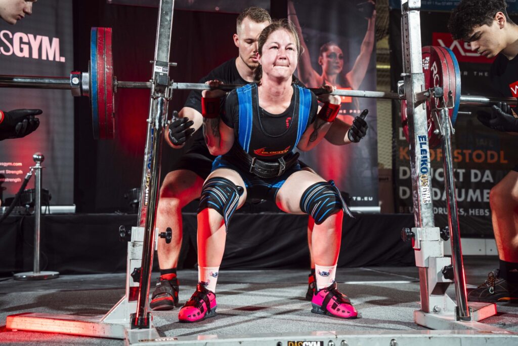 Patricia Nopp kämpfte sich stark durch den Wettkampf. Mit 160 kg Kniebeuge, 70 kg Bankdrücken und 130 kg Kreuzheben holte sie sich den 1. Platz in der Klasse -69 kg (Equipment) – auch ohne persönliche Bestleistungen eine beeindruckende Vorstellung.