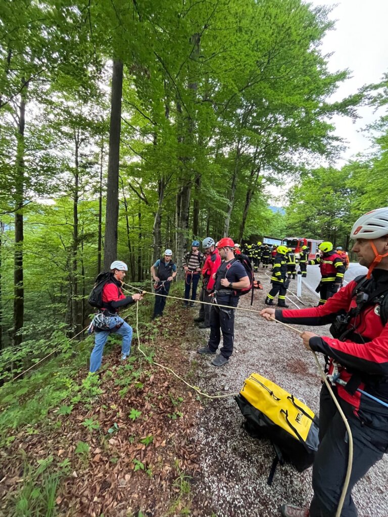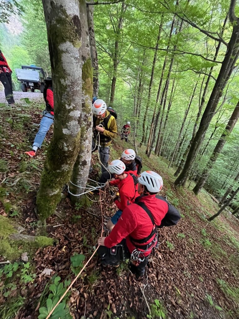Obertraun, am 21.05.2025: Mit über 30 Rettungskräften der Freiwilligen Feuerwehr und der Bergrettung Ortsstelle Obertraun, wurde ein Waldbrandszenario beübt. Im Vordergrund stand das organisationsübergreifende Arbeiten zwischen den Rettungskräften. So wurde das sichere & gesicherte Bewegen und Arbeiten mit gleichzeitigen Löscharbeiten im Steilgelände beübt. Hierbei wurden die neuen Waldbrandsets, mit speziellen Seilen und Sicherungsgeräten, verwendet. Diese Ausrüstung wurde vom Ausbildungsteam und der Firma Petzl zusammengestellt. Nach der Schlussbesprechung wurde der Abend mit einer gemeinsamen Grillerei & Beisammensein abgeschlossen.