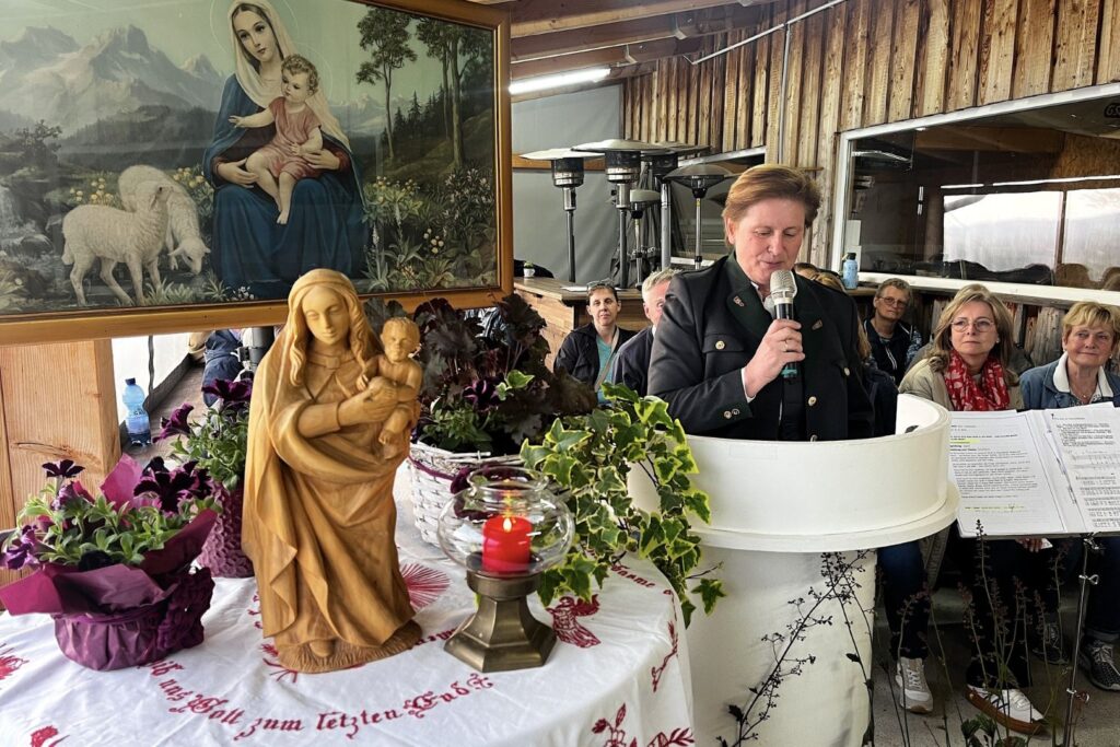Ingrid und Hans Burgstaller vom Reitverein Gschwandt haben mit ihren Helfer/innen eine feierliche Atmosphäre mit Blumen geschmückten Altarbereich geschaffen. Die Maiandacht wurde vom Christine Russmann geleitet, der Kirchenchor Gchwandt unter Leitung von Annemarie Hauer und einem Duo mit Querflöte und Steirischer Ziehharmonika (Ingrid Burstaller) sangen Marien- und Kirchenlieder, bei dem die vielen Gäste kräftig mitsangen.