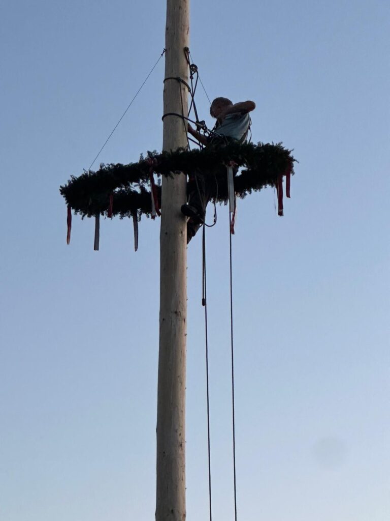 Eine besondere Leistung vollbrache Andi Bauer, der die beim Aufstellen beschädigte Befestigung des unteren Kranzes spontan und vor allem professional behoben hat.