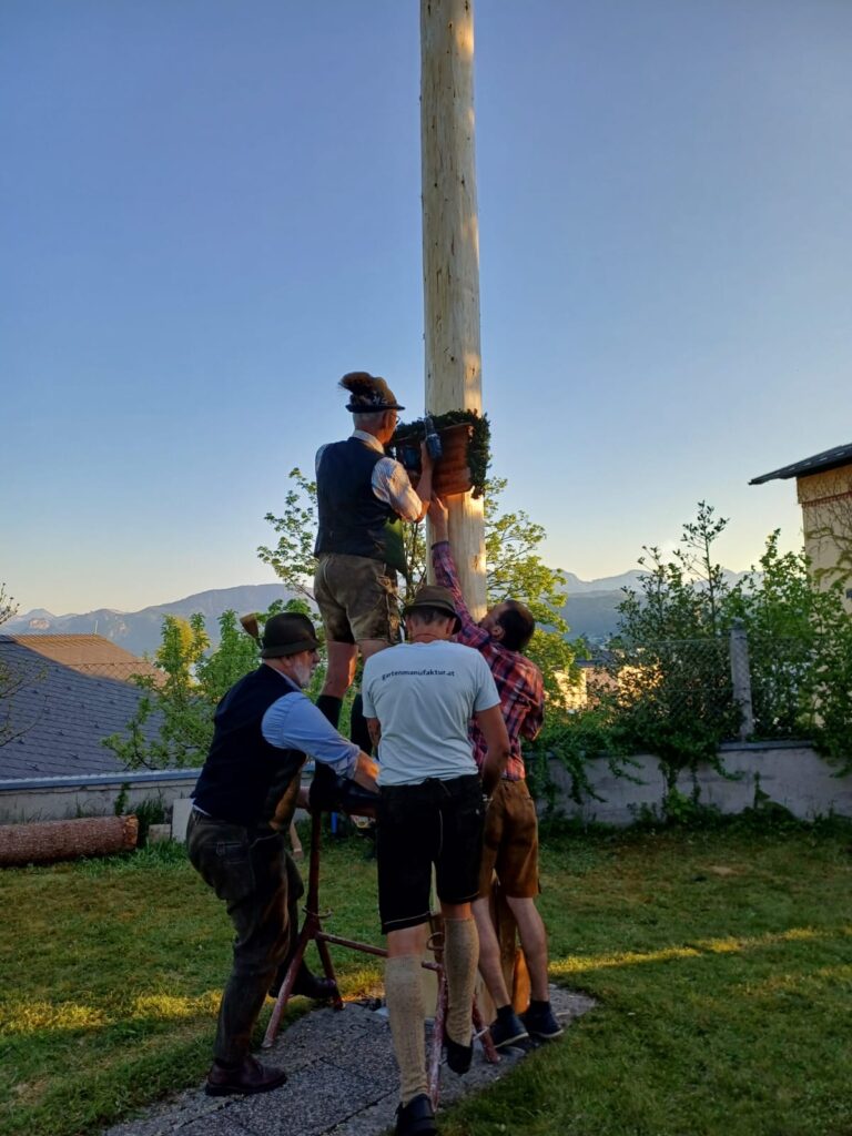 Unterstützt von sechsundzwanzig Turnern wurde unter der Anleitung von Obmann Gernot Gföllner der Baum, Stück für Stück ,mittels Gabelstangen aufgestellt. Viele Vorarbeiten waren notwendig, den von der Familie Vichtbaur in Kirchham gespendeten Baum zu fällen, transportieren, mit Girlanden und Kränzen zu schmücken. Bei traumhaften Frühlingswetter gab es noch Turnvorführungen der Jugend unter der Leitung von Helga Ghon, auf dem Tanzboden wurden unter reger Beteiligung Volkstänze getanzt und zur Unterhaltung im gemütlichen Teil spielte die Turnermusi und ein jugendlicher Solist auf der Zug auf.