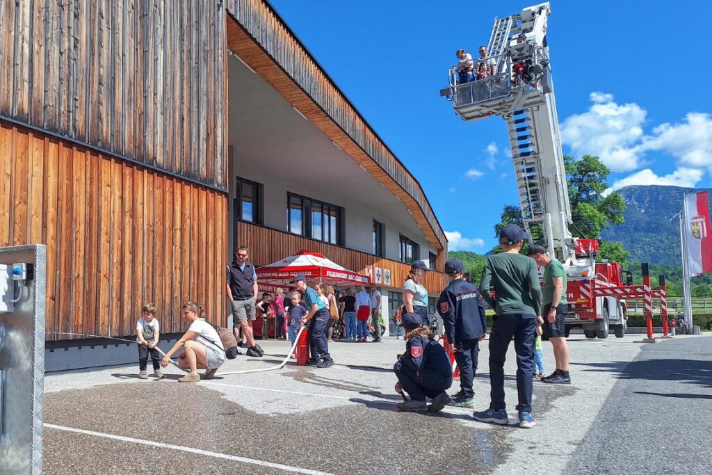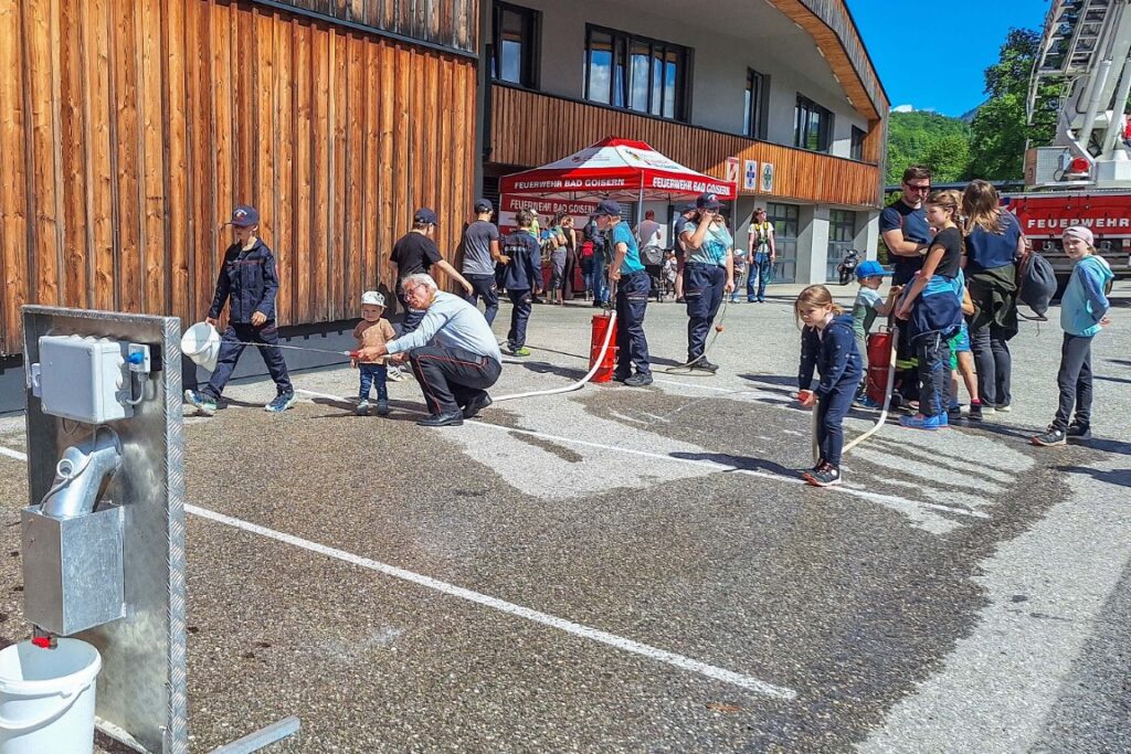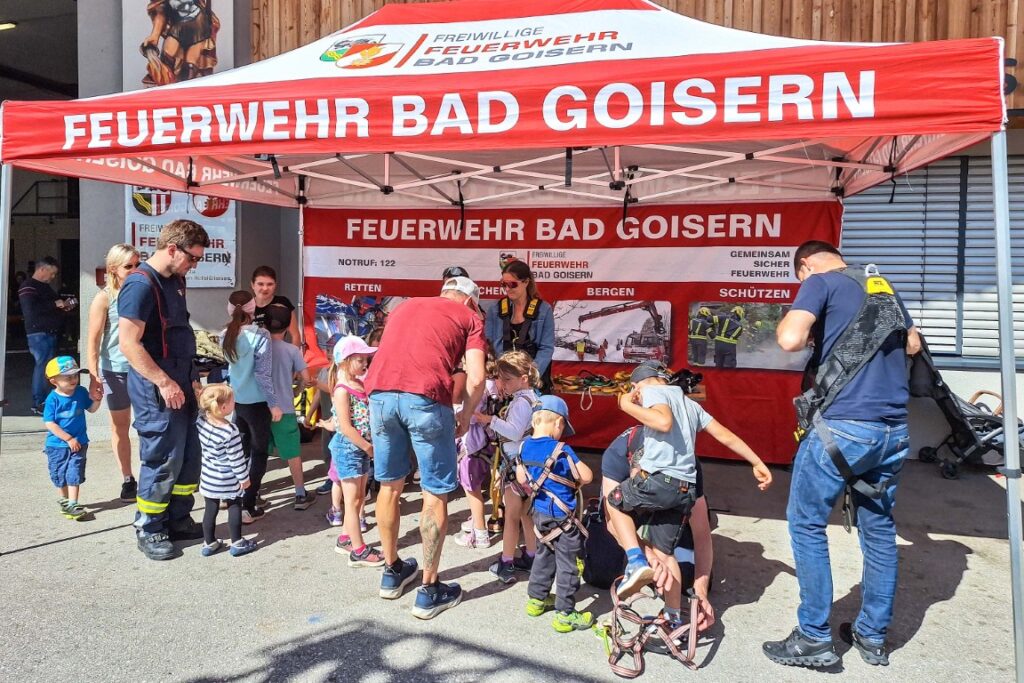 Kürzlich war es wieder soweit: Die kleinen, feuerwehrbegeisterten Sprösslinge rückten bei der Kinder-Floriani-Feier der FF Bad Goisern ganz in den Mittelpunkt. Mal einen Nachmittag „Feuerwehrluft schnuppern“ und spielerisch all das ausprobieren, was die großen Vorbilder bei der Feuerwehr so machen. Dazu wurde ein vielseitiges Programm geboten, das die Kinderaugen zum Strahlen brachte: Schon beim gemeinsamen Hissen der Fahne herrschte reges Treiben, anschließend gab´s Hubsteigerfahrten, eine Ausfahrt mit dem Feuerwehrauto und dem Feuerwehrboot oder die Kleinen durften sich beim Löschen mit Feuerwehrschlauch und Feuerlöscher versuchen. Mal in eine richtige Einsatz-Uniform schlüpfen oder beim „Feuerwehr-Minigolf“ einlochen – all das konnten die Kleinsten mal probieren. Und weil die Feuerwehrarbeit natürlich hungrig macht, durften die Zwerge ihre wohlverdiente Stärkung selbst an der Feuerstelle grillen.