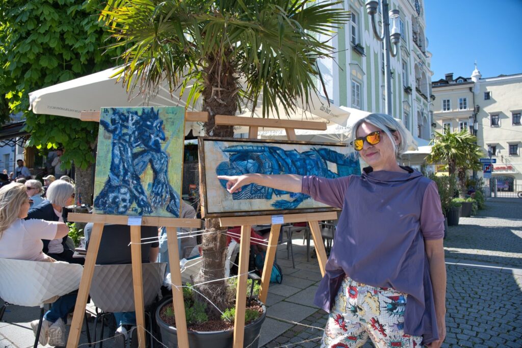 Daher war es kein gewöhnlicher Ausstellungsraum – der Gastgarten bot Platz für Begegnung, Staunen und Gespräche. Auch Günther Wimmer zeigte sich begeistert: „Man bringt die Kunst unter die Menschen.“ Die Künstler mischten sich unter das Publikum, beantworteten Fragen und erlebten hautnah, wie ihre Werke wirken.