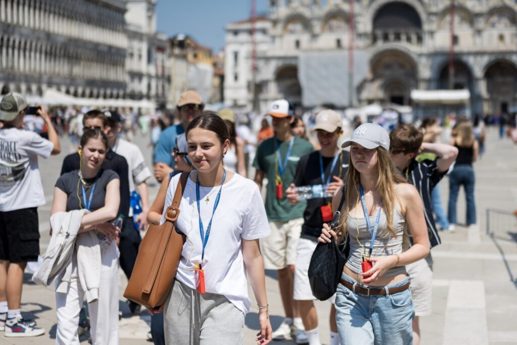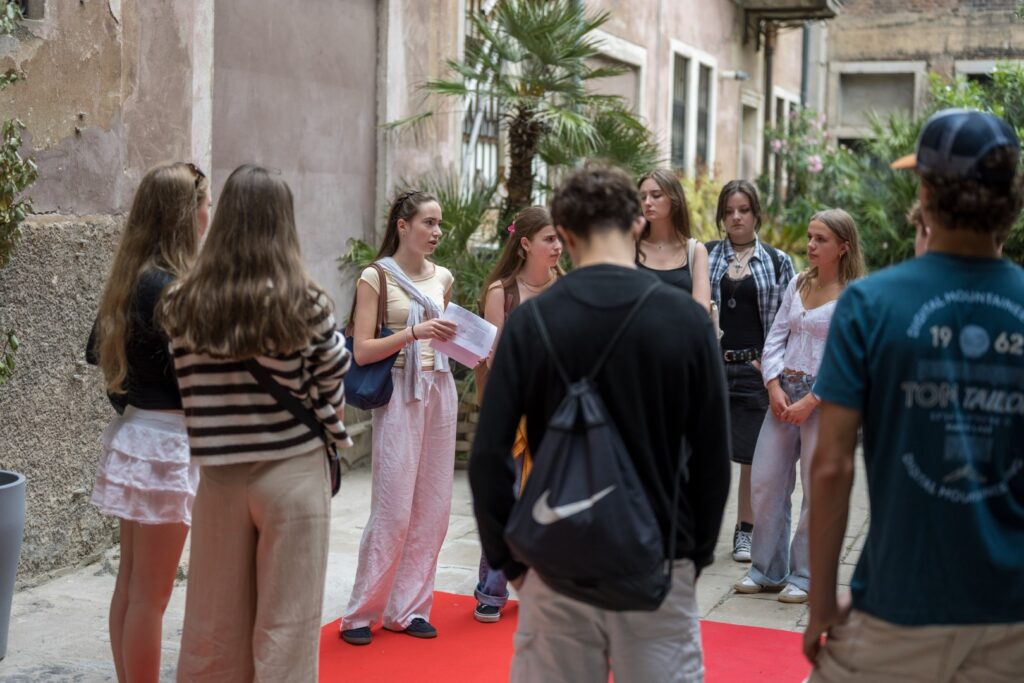 Im Fokus der Reise: der Massentourismus in Venedig – seine Chancen, Herausforderungen und Auswirkungen auf Stadt und Bevölkerung. Die Schüler:innen schlüpften dabei selbst in die Rolle von Stadtführer:innen. In Kleingruppen übernahmen sie spannende Aufgaben, recherchierten im Vorfeld und präsentierten ihre Themen direkt vor Ort – mal zu den Ursachen des Overtourism, mal zu den Besonderheiten der Lagunenstadt oder zur Geschichte einzelner Plätze und Gebäude.