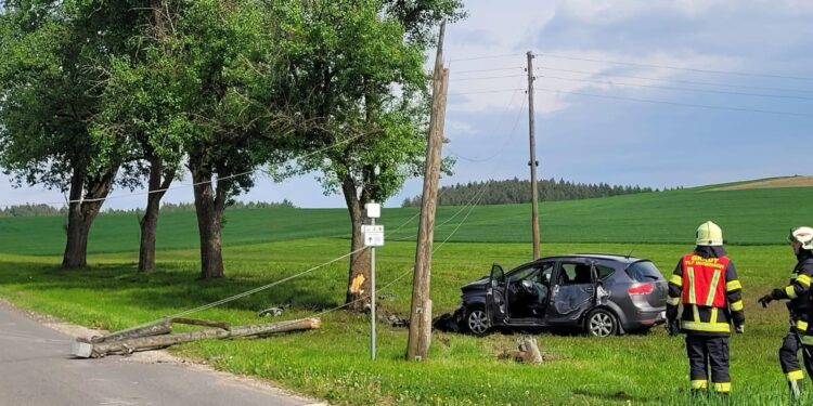 In Ungenach kam es am Mittwochnachmittag zu einem schweren Verkehrsunfall: Ein Pkw prallte gegen einen Strommast – eine Person wurde im Fahrzeug eingeschlossen.