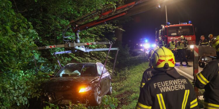 Im Fahrzeug befanden sich laut ersten Angaben zwei Personen. Beide konnten sich selbstständig befreien und waren beim Eintreffen der Einsatzkräfte bereits außerhalb des Unfallwracks – eingeklemmt war niemand. Die Feuerwehr übernahm die Absicherung der Unfallstelle und unterstützte den Abschleppdienst bei der Bergung des Unfallfahrzeugs.