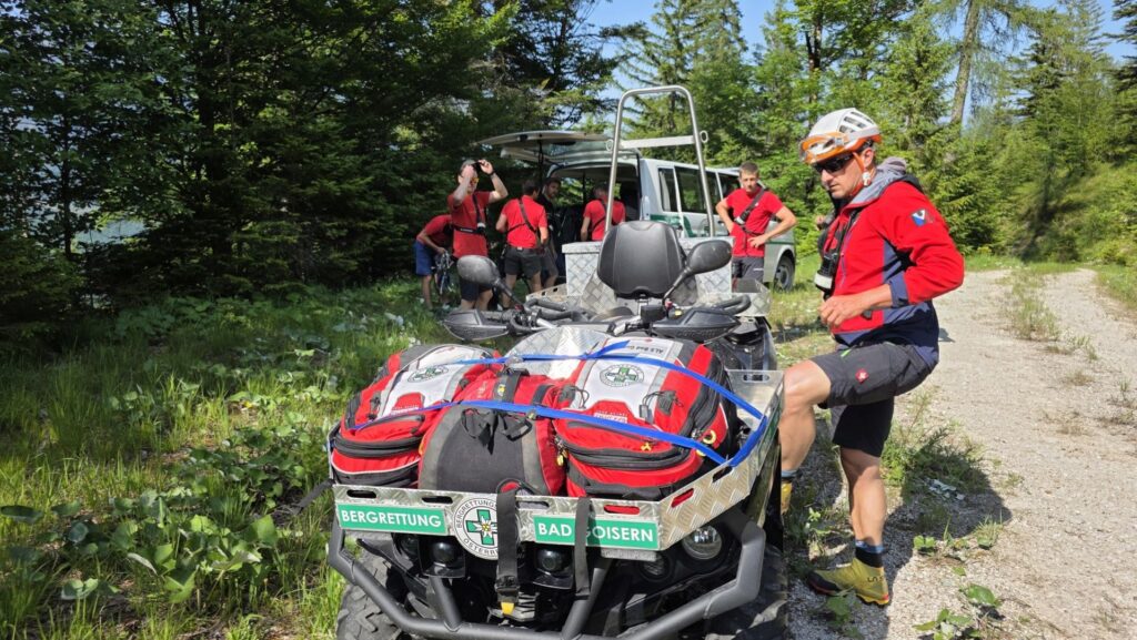 Ein schneller Voraustrupp mit Einsatzquad erreichte die Verunfallte bereits nach 45 Minuten und führte eine Erstversorgung durch. Die Bergung erfolgte Terrestrisch/Vakuummatratze und Ferno Trage bis zu einer Forststraße. Hier konnte die Verunfallte dem Roten Kreuz übergeben werden/Transport ins Skg.Klinikum Bad Ischl, berichtet die Bergrettung Bad Goisern.