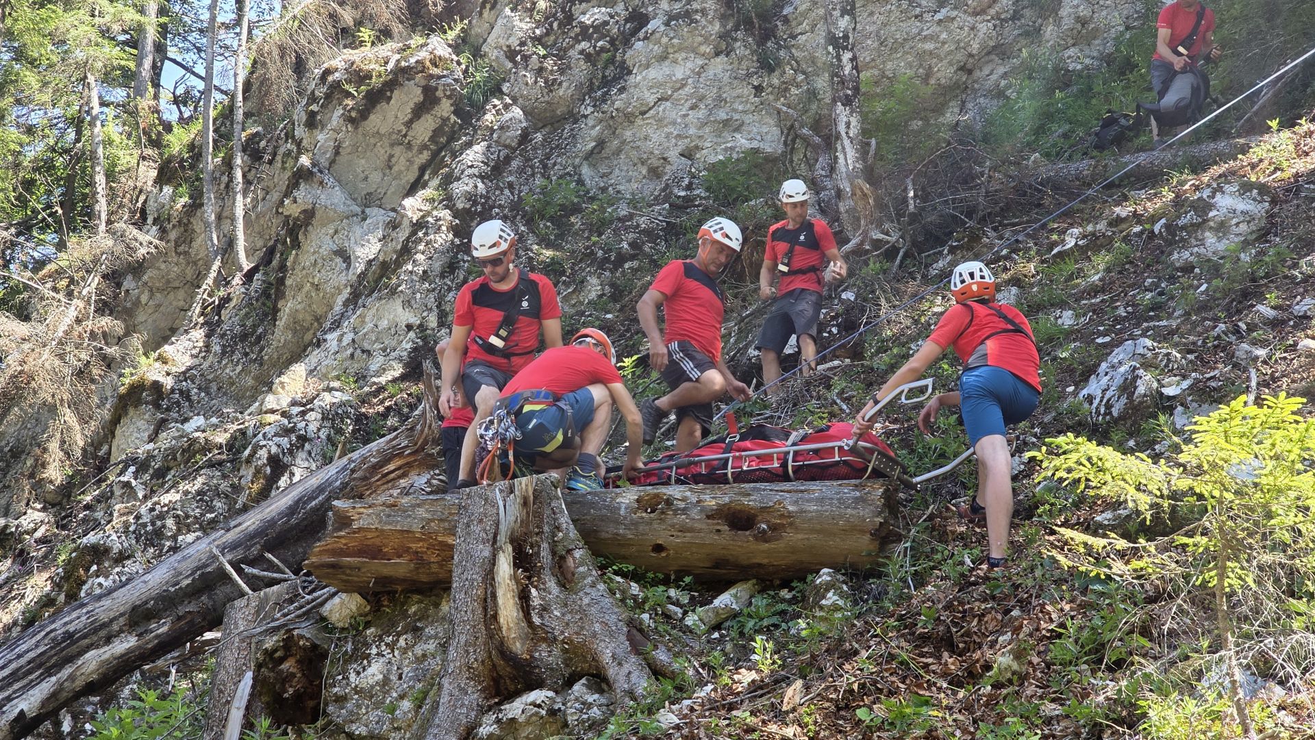 Der 54-jährige Mann sprang ca.2m hoch über die Felsstufe hinunter und verletzte sich dabei bei der Landung auf dem abschüssigen Waldboden. Mit dieser Verletzung am linken Bein konnte er nicht mehr selbständig weiter absteigen. Sein Bruder verständigte über den Notruf 140 die Einsatzkräfte. 16 Kameraden der BRD Bad Goisern und Bad Ischl rückten daraufhin zur Unfallstelle aus.