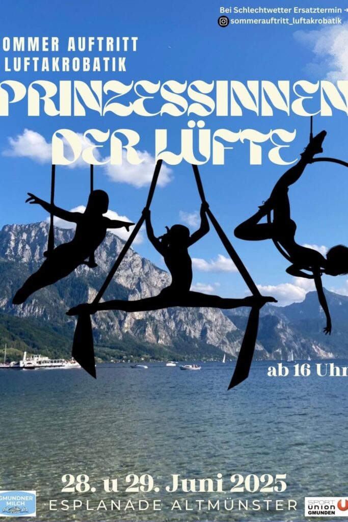 Altmünster, Juni 2025 – An diesem Wochenende verwandelt sich die Esplanade in Altmünster in eine Bühne der besonderen Art: Jugendliche zwischen 10 und 18 Jahren zeigen bei einer spektakulären Luftakrobatik-Show ihr Können hoch über dem Boden. Die Veranstaltung findet am Samstag, 28. Juni, um 16 und 18 Uhr sowie am Sonntag, 29. Juni, um 16 Uhr statt – bei freiem Eintritt und direkt am Ufer des Traunsees.