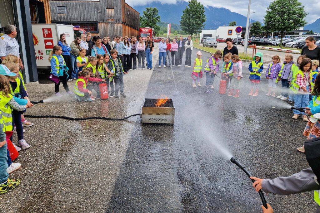 Der Vizepräsident des europäischen Feuerwehrverbandes, Robert Mayer, Msc strich durch sein Kommen den hohen Stellenwert der Initiative G.S.F. an sich und die Arbeit der FF Bad Goisern innerhalb der Initiative im Teilbereich der Elementarpädagogik heraus. Er stellte die Idee in Beisein des Bürgermeisters der Marktgemeinde Bad Goisern, Leopold Schilcher MAS und des E-BR Christian Huemer in einem Fachvortrag den Schülerinnen vor. Nach einer interessanten pädagogischen Diskussion stand Erste Löschhilfe am Programm, wobei die Schülerinnen mit Löschdecken und Feuerlöschern Entstehungsbrände löschten. Mit Hilfe des feuerwehreigenen Fire-Trainers konnte auch die Gefährlichkeit eines Fettbrandes demonstriert werden. Ein Wettbewerb mit dem Tanklöschfahrzeug rundete schließlich den Tag ab. Wolfgang Reisinger, der Sachbearbeiter des OÖ Landesfeuerwehrverbandes für G.S.F bedankte sich zusammenfassend bei der FF Bad Goisern für das Engagement.