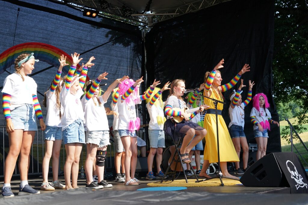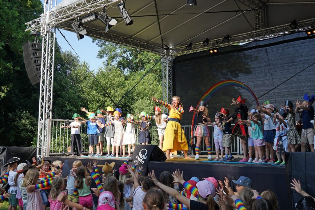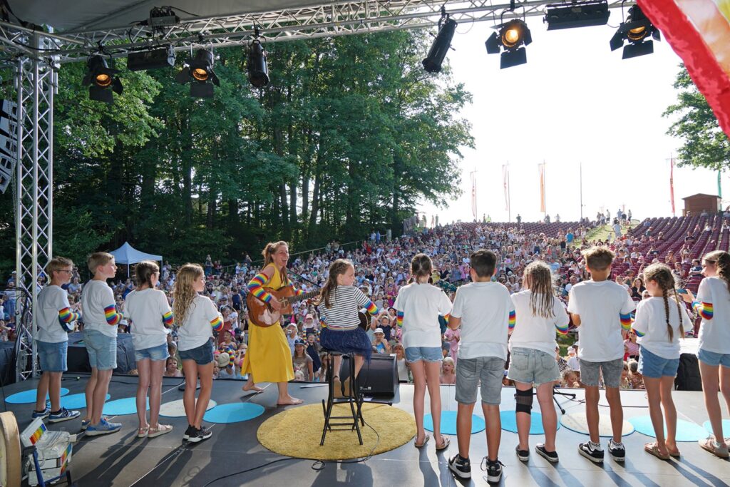 Ein fulminates Eröffnungskonzert des Frankenburger Kultursommers lieferten Mai Cocopelli & ihre Family Band mit dem Programm „Die Piraten sind los“ am 19. Juni auf der Würfelspielbühne. Hunderte von fröhlichen Kindern mit ihren ebenso gut gelaunten Eltern und Großeltern scharrten sich teils auf Sitzen, teils auf Picknickdecken rund um die Bühne der Ausnahmekünstlerin. Mai Cocopelli ist nicht nur eine fantastische Kinderliedermacherin und Musikerin, sondern auch eine großartige Entertainerin: vom ersten Ton an riss sie die Kinder – sowie auch viele Erwachsene – mit und sang und tanzte ausgelassen mit ihnen. Die Stimmung war so positiv, wie selten irgendwo anzutreffen: voll Liebe, Wärme, Spaß und Regebogen. Jetzt darf man sich auf die nächsten Events auf der grandiosen Naturbühne freuen: 21. Juni Strottern & Andyman, 4. Juli Martina Schwarzmann (Restkarten als Kombitickets noch am Bürgerservice Frankenburg erhältlich) und 11. Juli Voodoo Jürgens & Naked Cameo. Schnell noch Karten sicher: www.frankenburg-2025.at