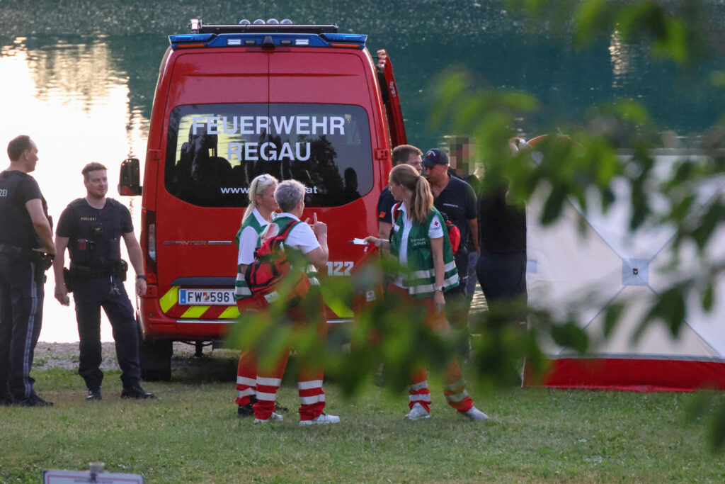 Die Einsatzkräfte wurden am Abend zu einem Vorfall beim Badesee – auch als Baggersee bekannt – im Gemeindegebiet von Regau alarmiert. Eine reglose Person wurde im Bereich des Badsees von Ersthelfern auf einer schwimmenden Plattform im See von Ersthelfern reanimiert.