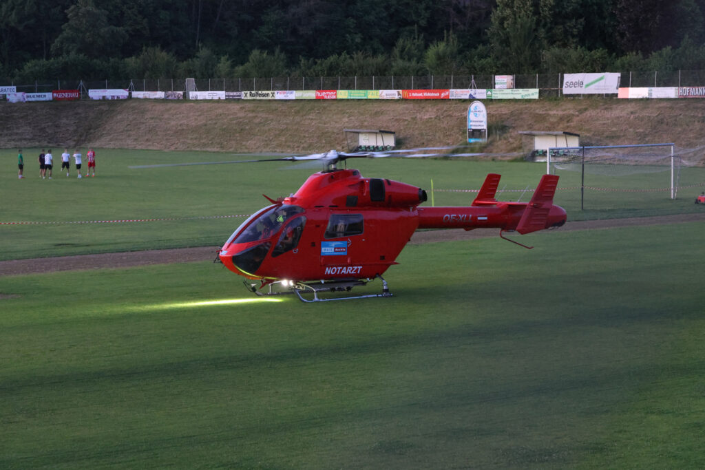Die alarmierten Kräfte mussten dann zur Person und in weiterer Folge die Person an Land gebracht werden. Die Kräfte der Feuerwehr wurden unterstützt durch ein Boot und ausgebildeten Tauchern. Neben der Rettung und dem Notarzt landete auch der Notarzthubschrauber Martin 3 am angrenzenden Fußballplatz um bei der Versorgung zu unterstützen.