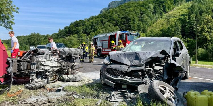 Mittwochnachmittag ereignete sich auf der B151 Attersee Straße zwischen Au-See und Unterach ein schwerer Verkehrsunfall. Ein PKW kollidierte frontal mit einem Traktor mit Anhänger. Der Traktorlenker wurde aus dem Fahrzeug herausgeschleudert.