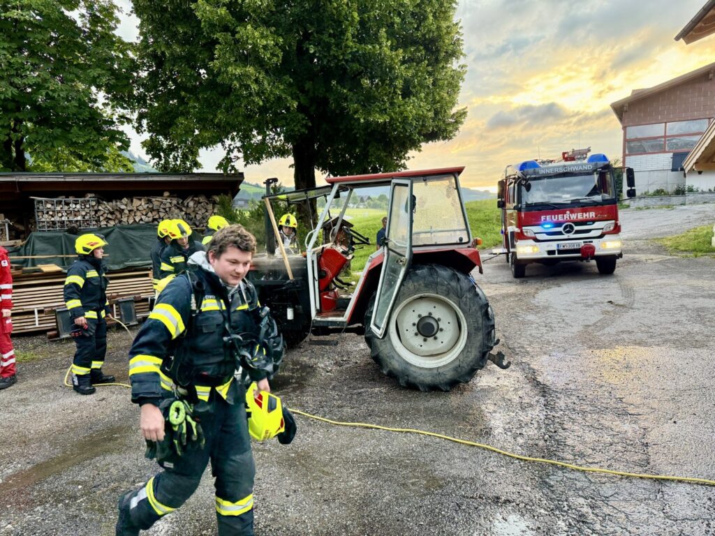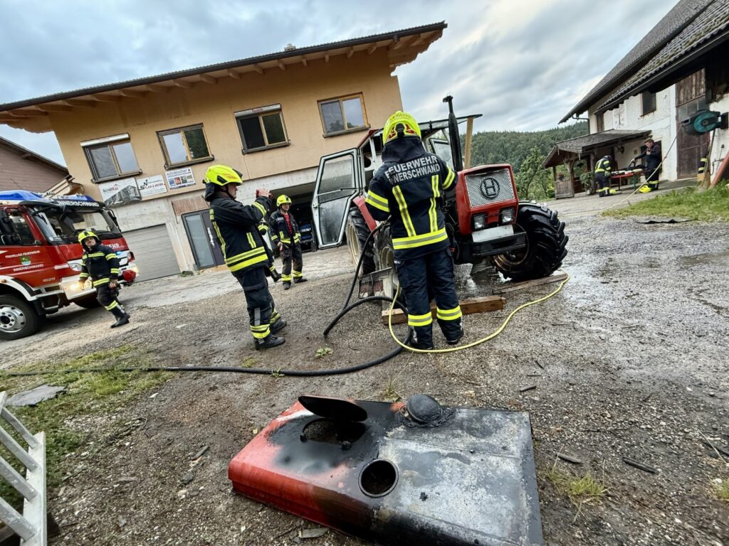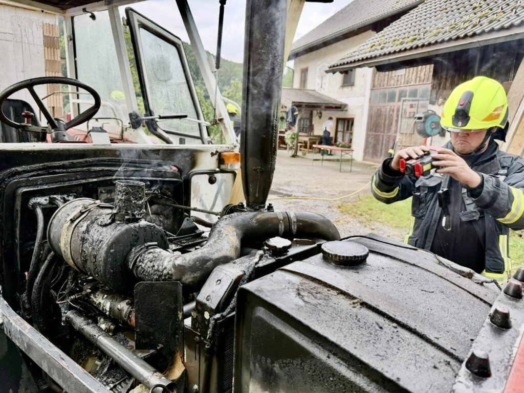 Der Landwirt – ebenfalls Feuerwehrmann – entdeckte den Brand in den frühen Morgenstunden und alarmierte die Feuerwehr. Sofort begann der Landwirt mit ersten Löschmaßnahmen mit einem Gartenschlauch und Feuerlöschern. Die rasch eintreffende Feuerwehr startete einen ersten Löschangriff mit drei Atemschutzträgern in der Garage. Nachdem der Traktor im Freien stand, öffneten die Feuerwehrleute den Motorbereich und löschten das Fahrzeug endgültig.“