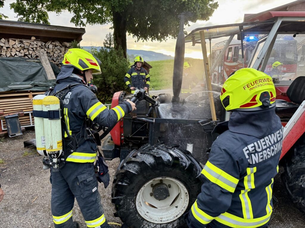 In Innerschwand am Mondsee stand am Freitag in den frühen Morgenstunden ein Traktor in einer Garage in Flammen.