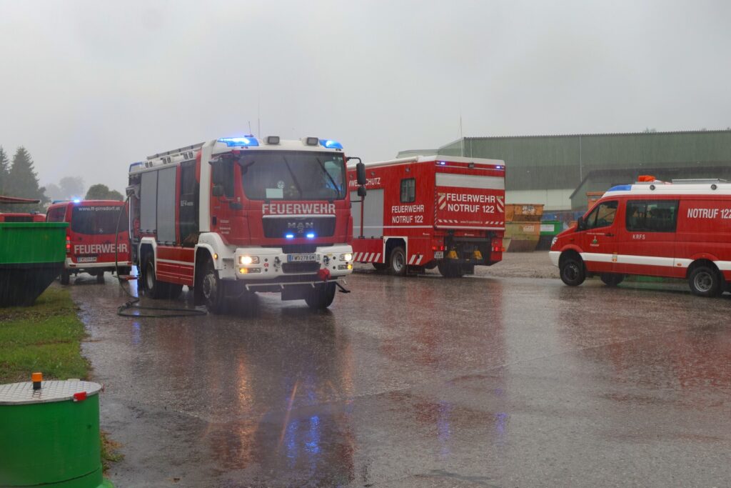 Sechs Feuerwehren standen Montagnachmittag bei einem Brand bei einem Entsorgungsunternehmen in Pinsdorf im Einsatz. Auslöser für den Brand, der rasch unter Kontrolle gebracht werden konnte, war offenbar eine chemische Reaktion.