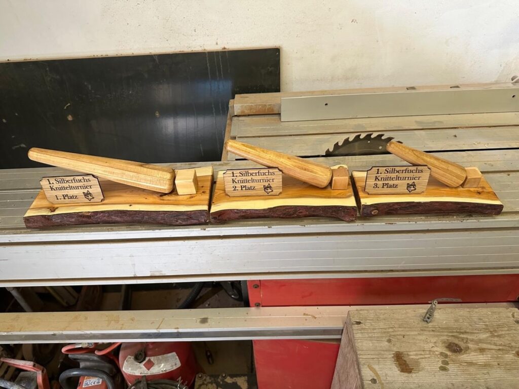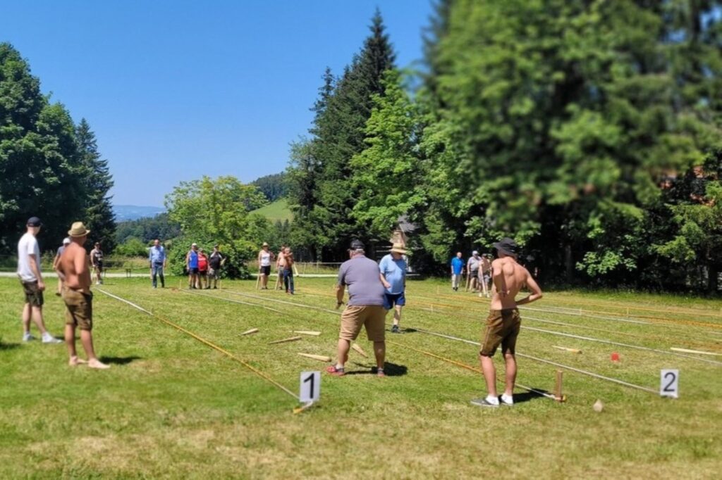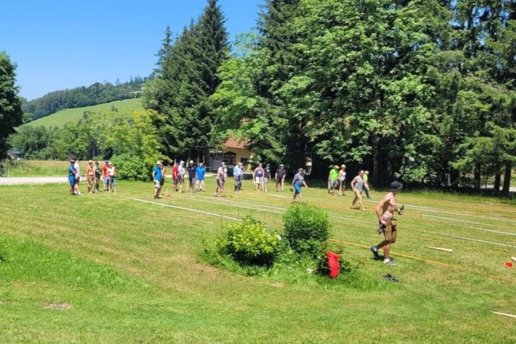 Am 14.6.2025 kam es am Flachberg beim Gasthaus Hain zum ersten Knittelturnier der Geschichte. Nach vielen Gesprächen am Stammtisch bei Fam. Hain Gasthaus Silberfuchs erklärten sich Alfred Geyerhofer, Andreas und Gerhard Huemer bereit, ein Knittelturnier am Feld neben dem Gasthaus Silberfuchs zu veranstalten. Perfekte Vorbereitung und Platzbedingungen machten es möglich, dass 9 Mannschaften mit je vier Knittelwerfer eine Nennung abgaben und auch zum Turnier antraten. Der Wettergott meinte es gut und so warfen die verwegenen Männer ihre meist aus Eschenholz gefertigten Knittel stundenlang um die Wette.