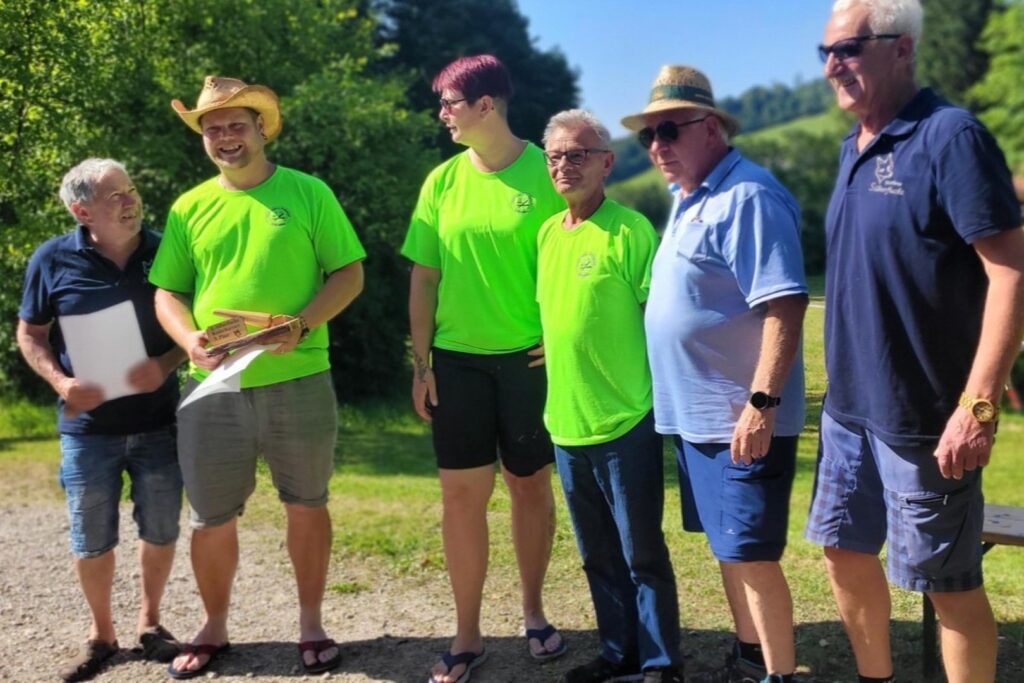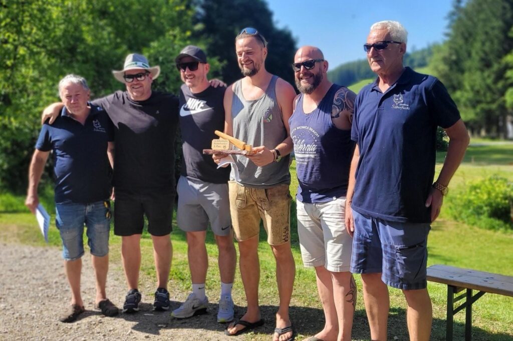 Am späten Nachmittag standen dann die Sieger des Teams „Stockhütte Gschwandt“ mit Alfred Geyerhofer, Franz Huemer, Rudolf Wampl und Alfred Scheuchl vor dem Team „Garage 2.0“ auf Platz zwei und „GEKC-AU“ auf Platz 3 fest. Mit einem sehenswerten Pokal, handgefertigt von Organisator Alfred Geyerhofer für die ersten drei Mannschaften und tollen Preisen für alle 9 Mannschaften fand nach Ende des Turniers eine Siegerehrung und auch eine entsprechende Feier beim Gasthaus Silberfuchs statt. Ein besonderer Dank gilt dem Wirt Gregor Hain, der nicht nur den Platz für dieses einmalige Turnier und die Feier zur Verfügung stellte, sondern auch immer für Sportler und Gäste ein offenes Ohr hat. Auch den Organisatoren Alfred Geyerhofer, Andreas und Gerhard Huemer herzliche Gratulation zur gelungenen Veranstaltung, die sicher im Sportkalender der nächsten Jahre seine Fortsetzung findet.