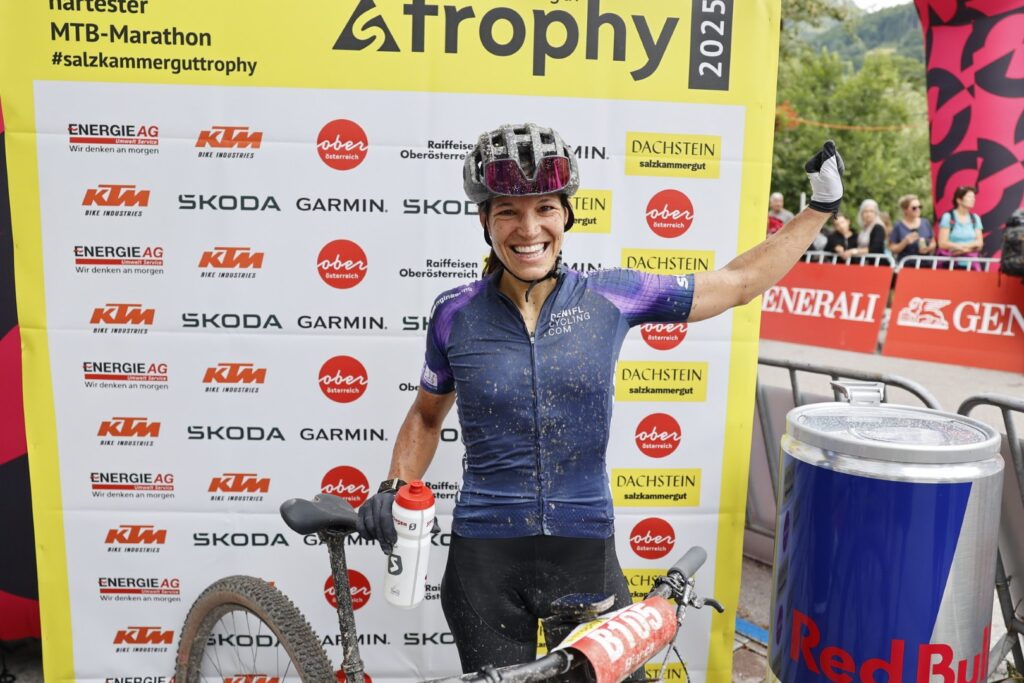 Die zweitlängste Marathondistanz ging nach hartem Zweikampf mit mehreren Führungswechseln in 5:08:21 Stunden an den Steyrer/OÖ Jakob Reiter (Hrinkow Bikes Steyr). Wolfgang Krenn aus Mondsee/OÖ (1OF1 Cycling Team) zog im Kampf um den Sieg den Kürzeren und musste sich mit dem 2. Platz zufriedengeben. Als 3. überquerte der Pole Wojciech Halejak (DK Gwarki) die Ziellinie am Goiserer Marktplatz. Die Vorjahres-Siegerin der A-Strecke, die Tirolerin Bianca Somavilla (deniflcycling.com) aus Fulpmes, siegte heuer überlegen in 6:04:46 Stunden auf der B-Strecke und konnte damit die Sammlung ihrer Siege im Salzkammergut aufstocken. Die Siegerin aus 2024, die Bad Goiserer Lokalmatadorin Irina Fettinger (Hrinkow Bikes Steyr) reihte sich auf Platz 2 ein. Die Deutsche Yvonne Kuhnlein komplettierte das Podium der Damen.