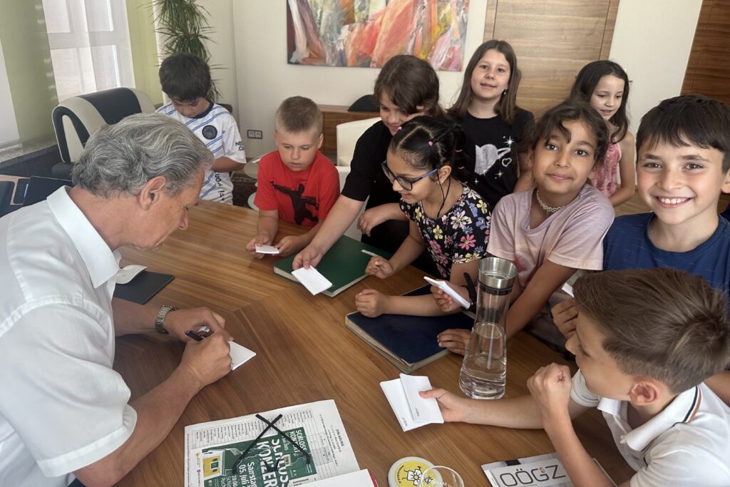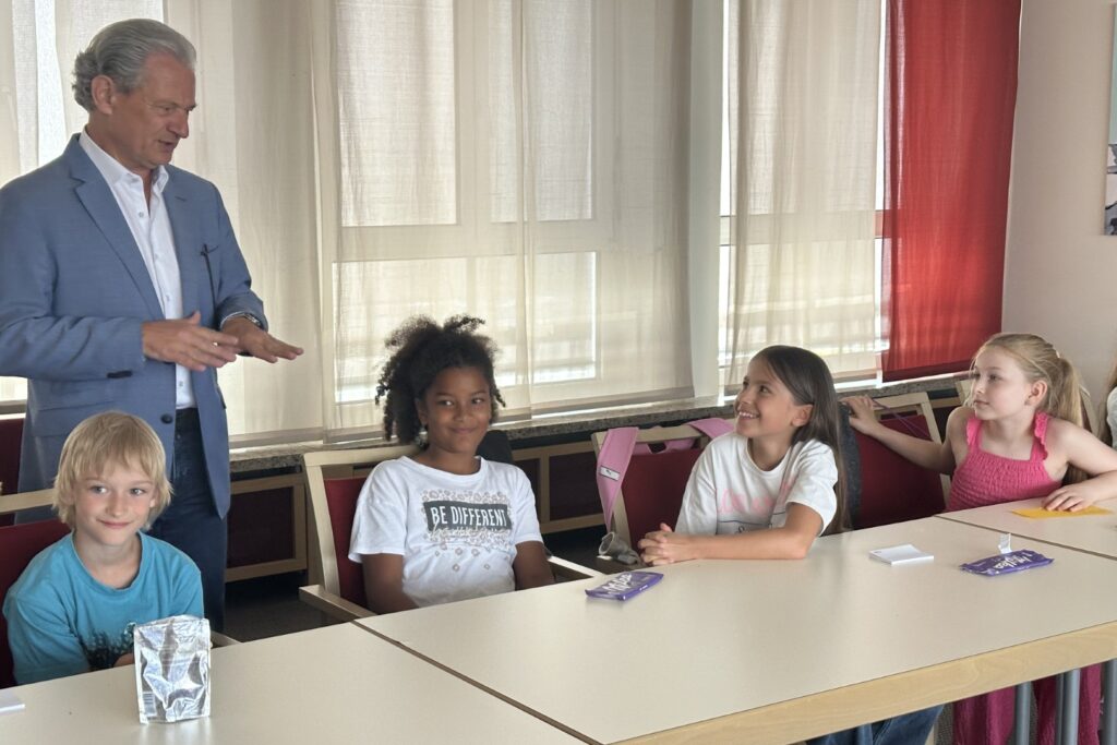 Nach einer leckeren Jause im großen Sitzungssaal, folgte immer das Highlight der Kids – die Fragestunde mit unserem Bürgermeister Peter Groiß. Hier durften ihm die Kids ungeniert Löcher in den Bauch fragen… Dies nutzten die Kinder auch ausgiebig. Nach dem Besuch des Bürgermeister-Büros und mit einem eigenen Plakat fürs Klassenzimmer endeten die abwechslungsreichen Vormittage.