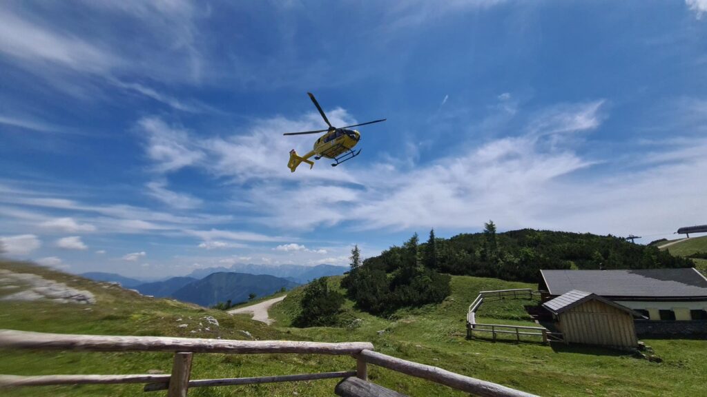 Am 19. Juni war ein Wanderer mit seiner Gruppe vom Offensee Richtung Rinnerhütte unterwegs, als er plötzlich über Brustschmerzen klagte. Obwohl er zunächst noch weiterging, verschlechterte sich sein Zustand, und er musste rasten. Zufällig vorbeikommende Wanderer erkannten den Ernst der Lage und alarmierten den Notruf, nachdem auch Kreislaufbeschwerden auftraten. Die Bergrettung Ebensee, die Polizei und der Notarzthubschrauber Christophorus 14 waren im Einsatz. Der Wanderer wurde per Tau geborgen, erstversorgt und zur weiteren Behandlung ins Klinikum Wels geflogen.