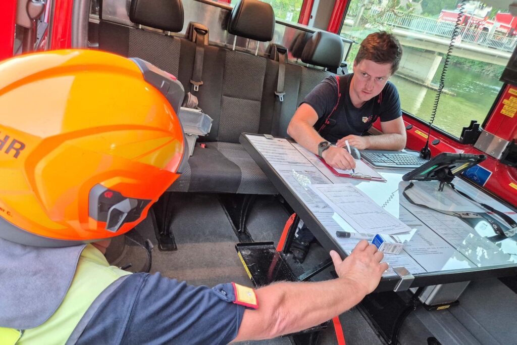 Sehr weitläufig war der Bereich am Traunfluss, der von den Feuerwehrkräften nach insgesamt drei vermissten Personen abgesucht werden musste. Koordiniert über die Einsatzleitung wurden mehrere Suchtrupps gebildet, die den teils dicht verwachsenen Uferbereich beidseits durchkämmten. Auch das Rettungsboot kam zum Einsatz, dessen Besatzung dann rasch eine im Wasser treibende Übungspuppe an Bord aufnehmen konnte. Und mittels Hubrettungsbühne gelang es, im Unterflurbereich ein „Opfer“ aus den Fluten zu retten. Auf insgesamt 2,5 Kilometern Länge waren die Suchtrupps im und am Wasser reichlich beschäftigt, und konnten schließlich auch die dritte vermisste Person auffinden und ans Ufer retten.