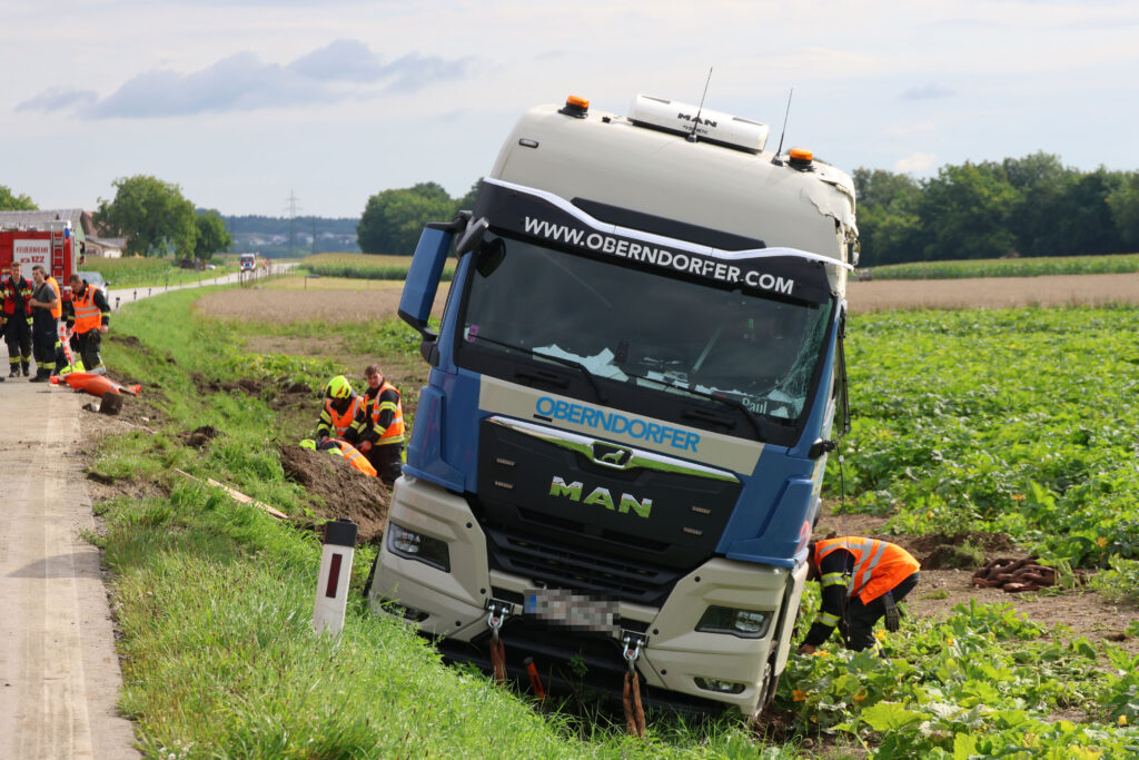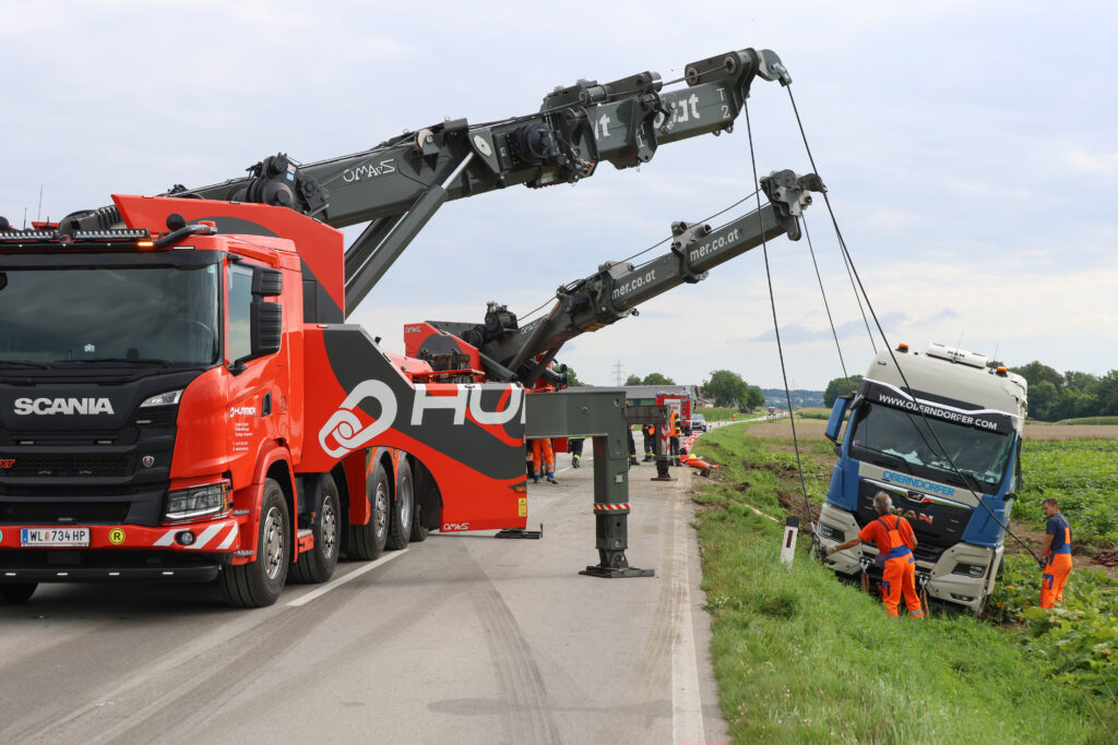 Der Unfall passierte am Montag in den frühen Morgenstunden an der Gemeindegrenze zwischen Neukirchen bei Lambach und Schlatt, wo der LKW offenbar zuerst rechts ins Bankett geraten und dann links von der B1 Wiener Straße abgekommen ist. Der LKW kam dann im Kürbisfeld zum Stillstand. Die Feuerwehr wurde zu Aufräumarbeiten alarmiert. Neben einem LKW-Bergeunternehmen wurden auch zwei weitere Feuerwehren zur Unterstützung angefordert.