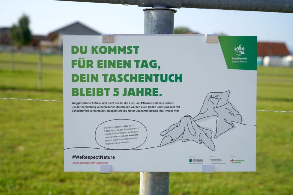 Unter dem Slogan „WeRespectNature“ steht “Fair Play in der Natur” im Zentrum der Aktivitäten. Neben Aktionen zur Bewusstseinsbildung sind auch regionale Pilotprojekte geplant, bei denen gemeinsam mit den GrundbesitzerInnen konkrete Lösungsansätze für die in der Region vorherrschenden Konfliktfelder entwickelt werden. Auch die Naturfreunde Ohlsdorf unter der Vorsitzenden Silvia Hufnagl und Gebietsvorsitzender Salzkammergut und Funktionär der Naturfreunde Ohlsdorf Manfred Spitzbart haben sich dieser Aktion angenommen und in den letzten Tagen im Ortsteil Ehrenfeld entsprechende Hinweistafeln entlang des Wanderweges angebracht.