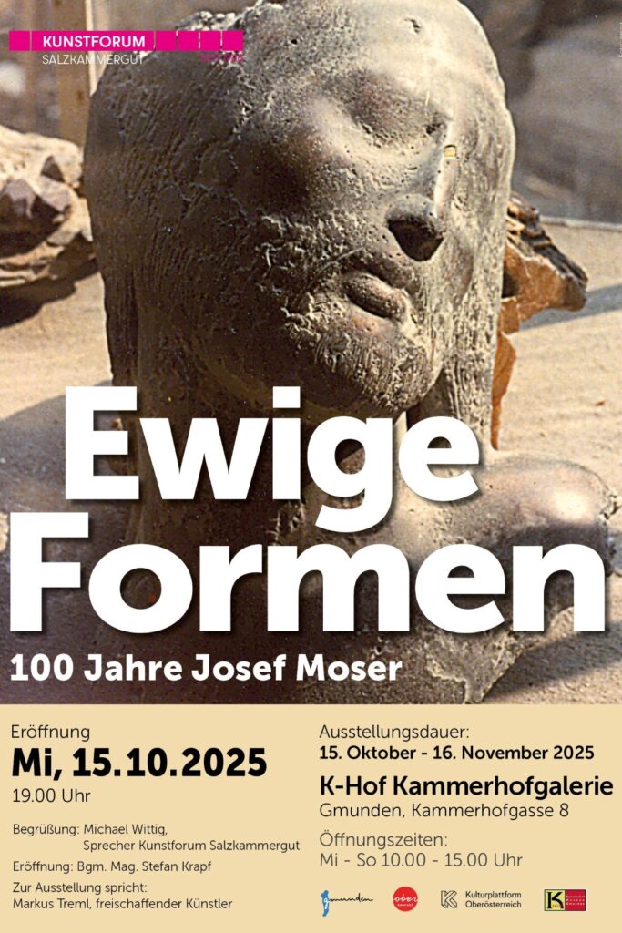 Zum 100. Geburtstag des oberösterreichischen Bildhauers Josef Moser findet die Gedenkausstellung „Ewige Formen“ im K-Hof Kammerhof Museum Gmunden statt. Josef Moser war lange Zeit Mitglied der Künstlergilde – heute Kunstforum Salzkammergut. Die Familie Moser und das Kunstforum Salzkammergut würdigen das Lebenswerk eines Künstlers, dessen Schaffen über Generationen hinweg inspiriert und berührt hat.
