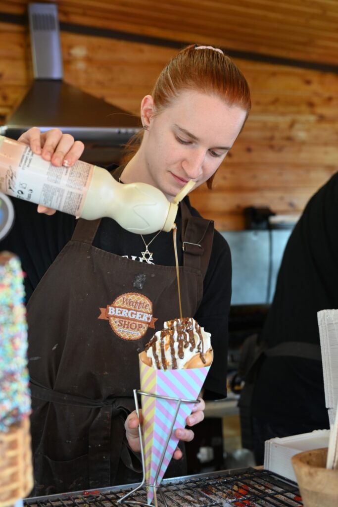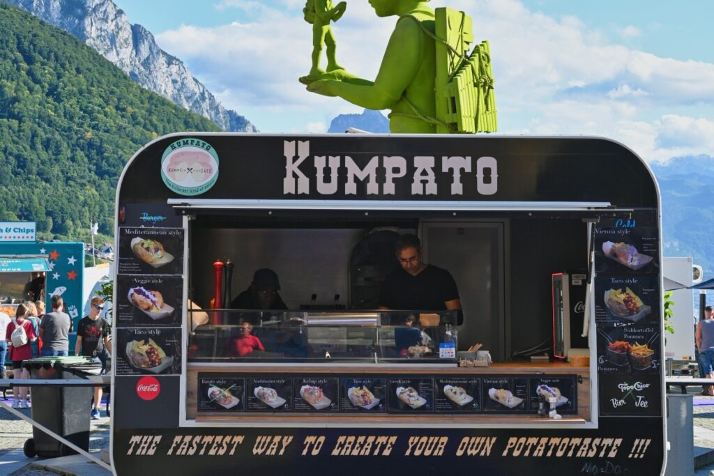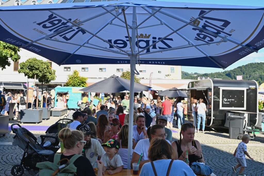 Das Festival begann am Freitag leider mit schlechtem Wetter und musste am Abend abgesagt werden. Aber der Samstag bescherte Kaiserwetter und lockte zahlreiche Besucher an. Auf dem Platz reihten sich 17 Trucks mit Spezialitäten aus verschiedenen Ländern. Von Ungarn bis Norwegen, von Italien bis zu den Philippinen wurde eine Palette geboten, die Urlaubsgefühle hervorrief. Feurige Tacos, tibetische Teigtaschen, knusprige Kartoffelspiralen und süßer Baumkuchen luden zum Schlemmen ein.