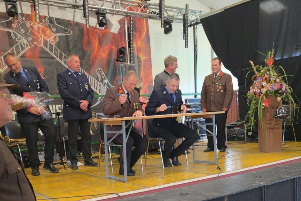 Der Sonntag stand ganz im Zeichen von Tradition und Gemeinschaft. Bei einem feierlichen Frühschoppen wurde die Partnerschaftsurkunde mit der Feuerwehr Pfaffing/Rosenheim (Bayern) unterzeichnet – ein historischer Moment für die grenzüberschreitende Kameradschaft.